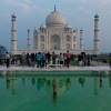Oftmals verhüllt der über Agra schwebende Dunst die Türme des direkt am Fluss Yamuna liegenden Taj Mahal Mausoleums, dessen marmorne Grundplatte imposante 100×100 Meter misst. Das Taj Mahal ist nicht nur in dieser Hinsicht ein Bau der Superlative. Während der 17 jährigen Bauzeit kamen über 1000 Elefanten zum Einsatz, ganz zu schweigen von den unzähligen Arbeitern und Unmengen selbst nach heutigen Maßstäben äußerst wertvollen Materialien, die aus ganz Indien und Asien herangeschafft wurden.