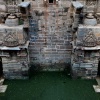 Das dunkle, poröse aber dennoch sehr stabile Gestein ist vulkanischen Ursprungs und der Kontrast zwischen heller Fuge und finsterem Fels gibt diesem Ort das gewisse außerirdische Etwas, ein die Symmetrie zusätzlich unterstützendes monochromes Element. Das Portal an der Kopfseite beinhaltet Abbildungen des elefantenartigen Wassergottes Ganesha und beherbergte auch Waschmöglichkeiten, so auf der linken Seite die Räume für die Herren, rechts logischerweise die für die Frauen.