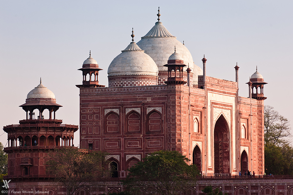 Anstehen um ins Taj zu kommen kann ziemlich amüsant werden. Am Morgen begehren glücklicherweise nur wenig Touristen Einlass, die starten dann aber auch schon mal das Ziehen ernsthafter Vergleiche zwischen dem Taj und Boston oder Philadelphia… Die Sicherheitsvorkehrungen sind penibel. Taschenmesser etc. sind nicht erlaubt und auch der Fotorucksack und die Ausrüstung gehen gerade noch so durch, nachdem man sich beim Abtasten durch den Sicherheitsbeamten ein wenig das Sexualleben auffrischen konnte.