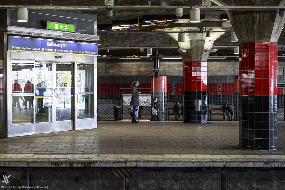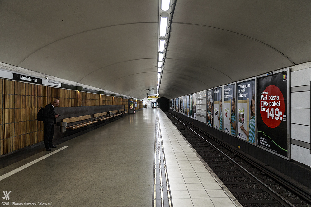 Eine links verkehrende Bahn bringt auf jeden Fall selbst den orientierungsfähigsten Menschen schnell zu Fall, so dass die Phrase „Ok, dann fahren wir halt wieder ein paar Stationen zurück“ schnell ins Alltagsvokabular einer Stockholm-Reise einfließt. Gesagt, getan, fahren wir – Fotografenfreund Torsten sowie meine Wenigkeit – in altbekannter Berliner BVG-Weise das komplette Streckennetz der Stockholmer Tunnelbana ab.