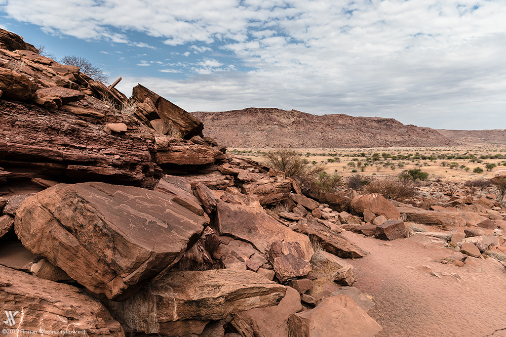 Es ist also wenig verwunderlich ihre künstlerischen Hinterlassenschaften auch in Namibia zu finden, genauer gesagt im Damaraland, dem trocken-felsigen Gebiet südwestlich der Etosha-Pfanne, wo die Lebensbedingungen deutlich rauer und arider sind als in Botswana.