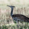 Am Morgen danach sattle ich meinen Jeep um die nächsten drei Tage in der zentralen Kalahari unterwegs zu sein. Entlang des Weges fliegen immer wieder diverseste Greifvögel auf, von Falken, über Habichte bis hin zu einem Sekretär. Dieser äußerst scheue Vogel stapft auf der Suche nach Schlangen mit seinen Stelzfüßen durch die Savanne. Diese Kriechtiere sind seine Primärnahrung. Mit seinen Stelzbeinen trampelt er die Schlange tot ohne Gefahr zu laufen dabei selbst gebissen zu werden. Ähnlich majestätisch ist die Riesentrappe, die, wenn man ihr zu nah kommt, beim Flüchten unter Beweis stellt Afrikas größter flugfähiger Vogel zu sein.