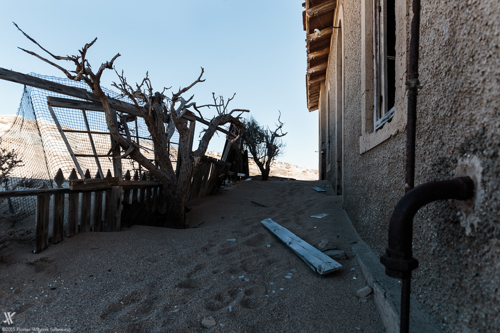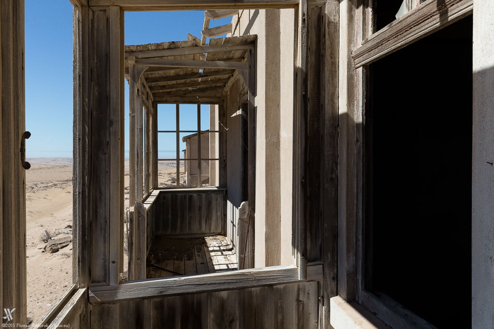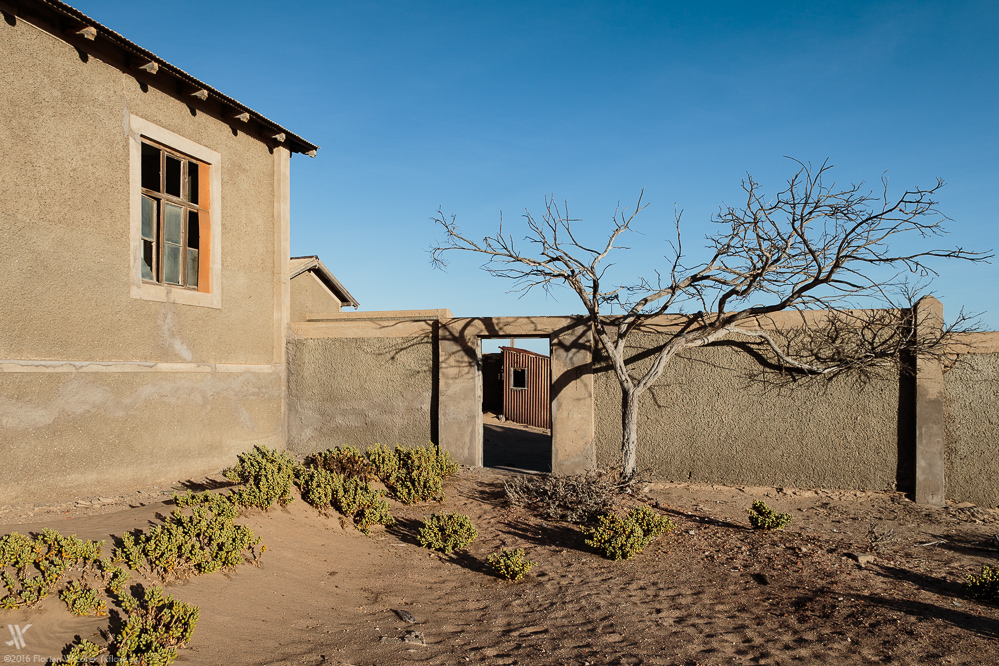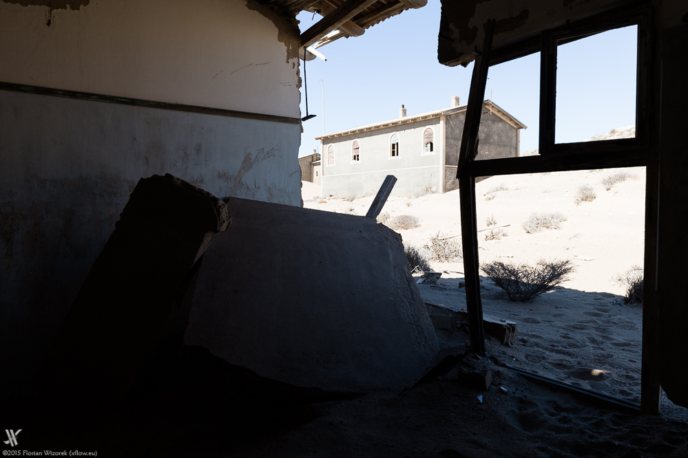 Der in die Häuser eindringende Wüstensand, die sengende Hitze, der Kontrast zwischen morgendlicher Australsonne und dunkelstem Schatten, setzt diesen ehemaligen Außenposten des kolonialen Deutschlands in Szene. Trotz seines Niedergangs kann man an vielen Häusern noch erkennen, wer hier einst gewohnt oder was hier geschehen ist, und so ist zum Beispiel die ehemalige Schule gut erkennbar. Wie muss es wohl gewesen sein als Sechs- bis Siebenjähriger hier, inmitten der Namib-Wüste, nicht nur das Lesen und Schreiben erlernt sondern auch gespielt zu haben?