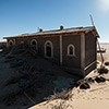 Von der Geschichte jener Gold-, oder besser gesagt Diamantengräbertage, zeugen heute nur noch die Überreste der aus den Dünen der Namib wie Eisbergspitzen aus dem Atlantik guckenden Häuser. Der Wüstensand, vorwärts gepeitscht von teils herkulischen Westwinden, kennt keine Gnade. Er dringt überall ein und füllt die Räume der Kolmannskuppe derart auf, dass jede Indoor Beach Bar vor Neid erblasst. Die Wüste überflutet aber auch regelmäßig die einzige befestigte Straße dieser Region, die B4, die de facto jeden Tag aufs Neue von Radladern geräumt werden muss. Für die verlassenen Häuser der unweit dieser Straße gelegenen ehemaligen kolonialdeutschen Mineursstadt scheint die letzte Messe allerdings gesungen.