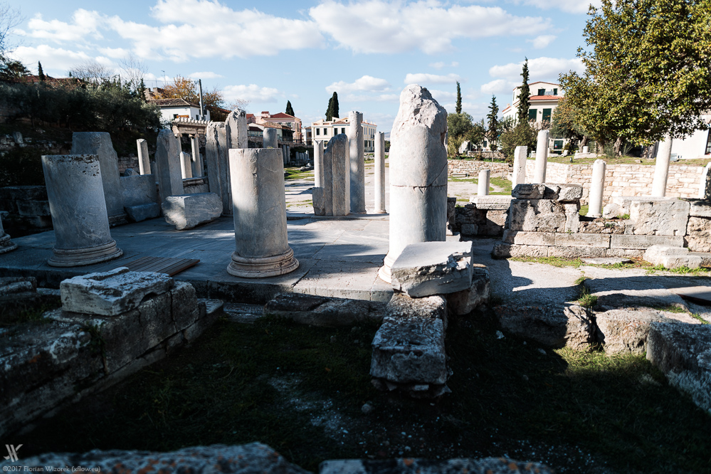 Im Schatten jenes Burgbergs, dort wo Burgberg-ähnliche Mittagsrationen von Gyros und Zaziki serviert werden, sind zwei wichtige römische Hinterlassenschaften zu finden, die so genannten Agoren (ehemalige Markt- oder Versammlungsplätze). Auch diese Orte erzählen die Geschichte einer vergangenen Zivilisation, die einst als Imperium ins Rennen dann und als kläglicher Rest durchs Ziel ging.
