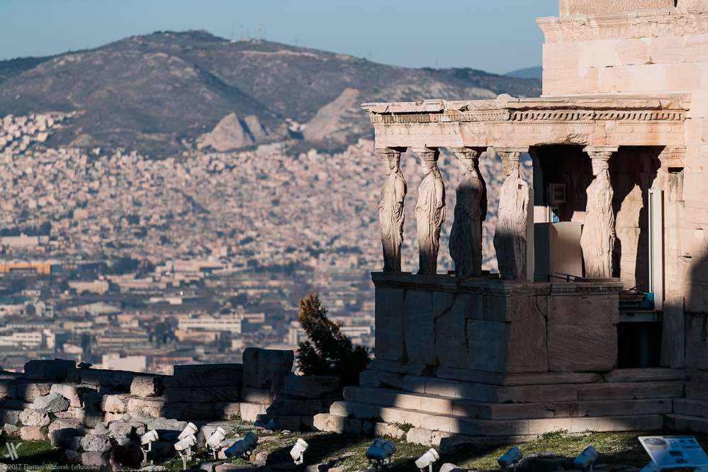 Es ist früh am Morgen. Die Wintersonne schickt sich an über die Hügel der Umgebung zu kriechen und die Soldaten, die in der Früh immer die griechische Flagge hissen, verrichten ihren Dienst warm eingepackt. Es ist kalt. Dennoch sind ihre Gesichter erfüllt von Stolz. Einer grinst sogar als er mitkriegt, dass ich mir zu dieser frühen Stunde erstmal fett Drum’n Bass zu Gemüte führe während die ersten Sonnenstrahlen das Gemäuer des Erechtheions durchdringen.