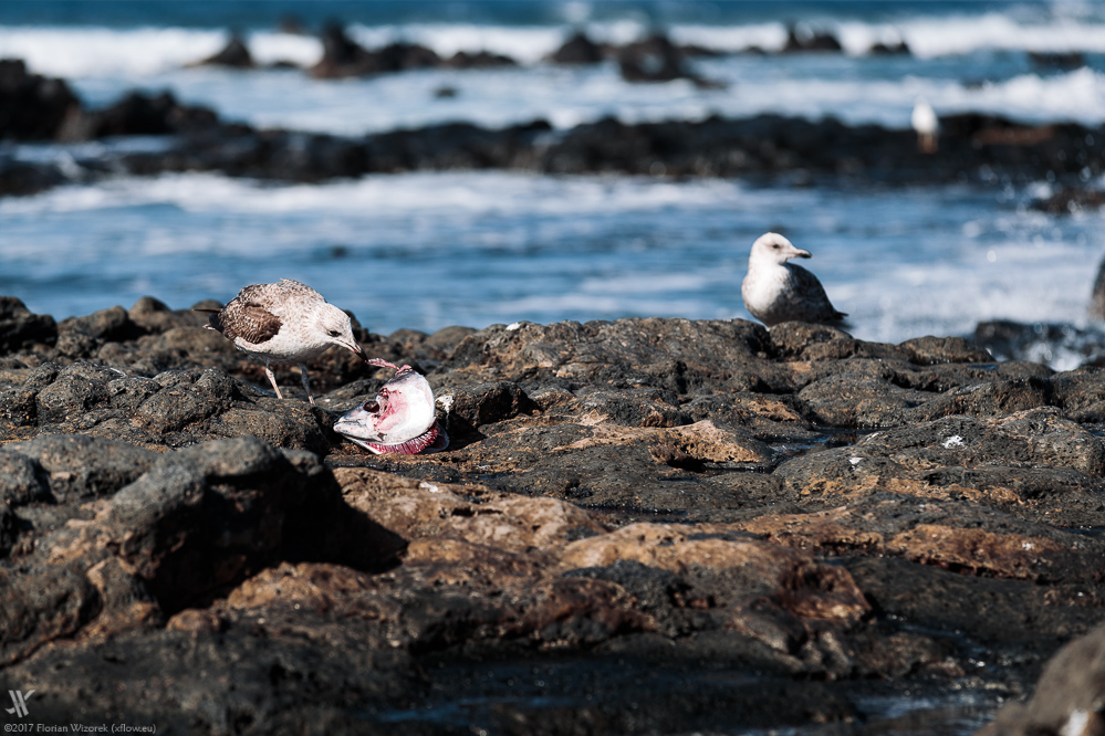 Was der Mensch vom Bejagen des Meeres zurück lässt, schnappen sich gierige Möwen, die auch schon mal schimpfend und prügelnd wie die Kesselflicker eine Futterneid getriebene Schlacht unter Artgenossen anzetteln. Die wunderschön bunt gefärbten und das Ufer besiedelnden Krabben ficht das alles nicht an. Stoisch genießen sie sicherlich auch jetzt gerade ihr Bad in der atlantischen Sonne der Kanaren.