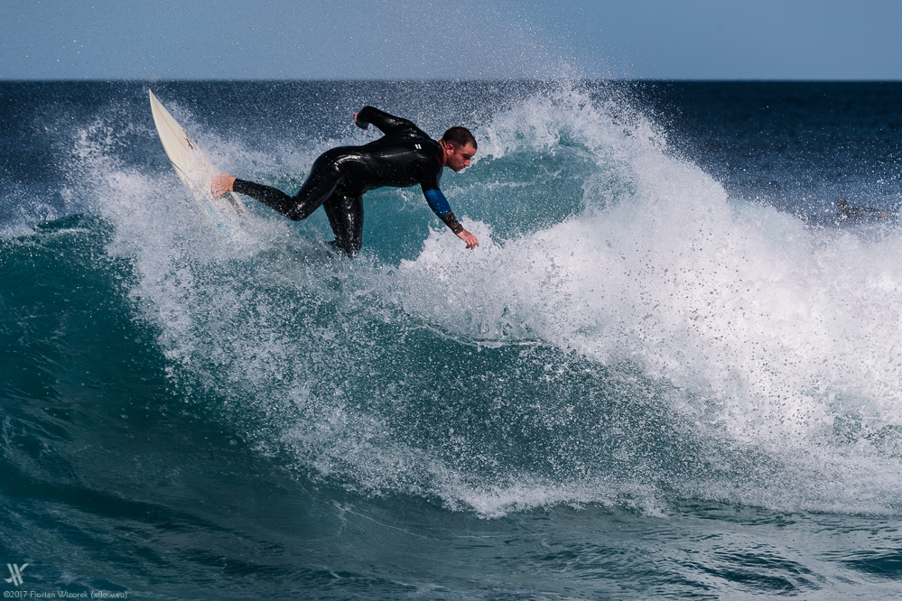 Einige der Surfer vor La Santa haben Weltniveau. Es ist ein Hochgenuss diesen Menschen zusehen zu dürfen, wie sie, eins mit dem Board, Welle um Welle abreiten und dabei teilweise eine Akrobatik abliefern, für die man normalerweise hätte Eintritt zahlen müssen. Natürlich legen sich die Jungs und Mädels nochmal richtig ins Zeug, wenn ihnen ein Profifotograf zusieht der dann auch noch bereitwillig neue Fotos rausrückt ;-)