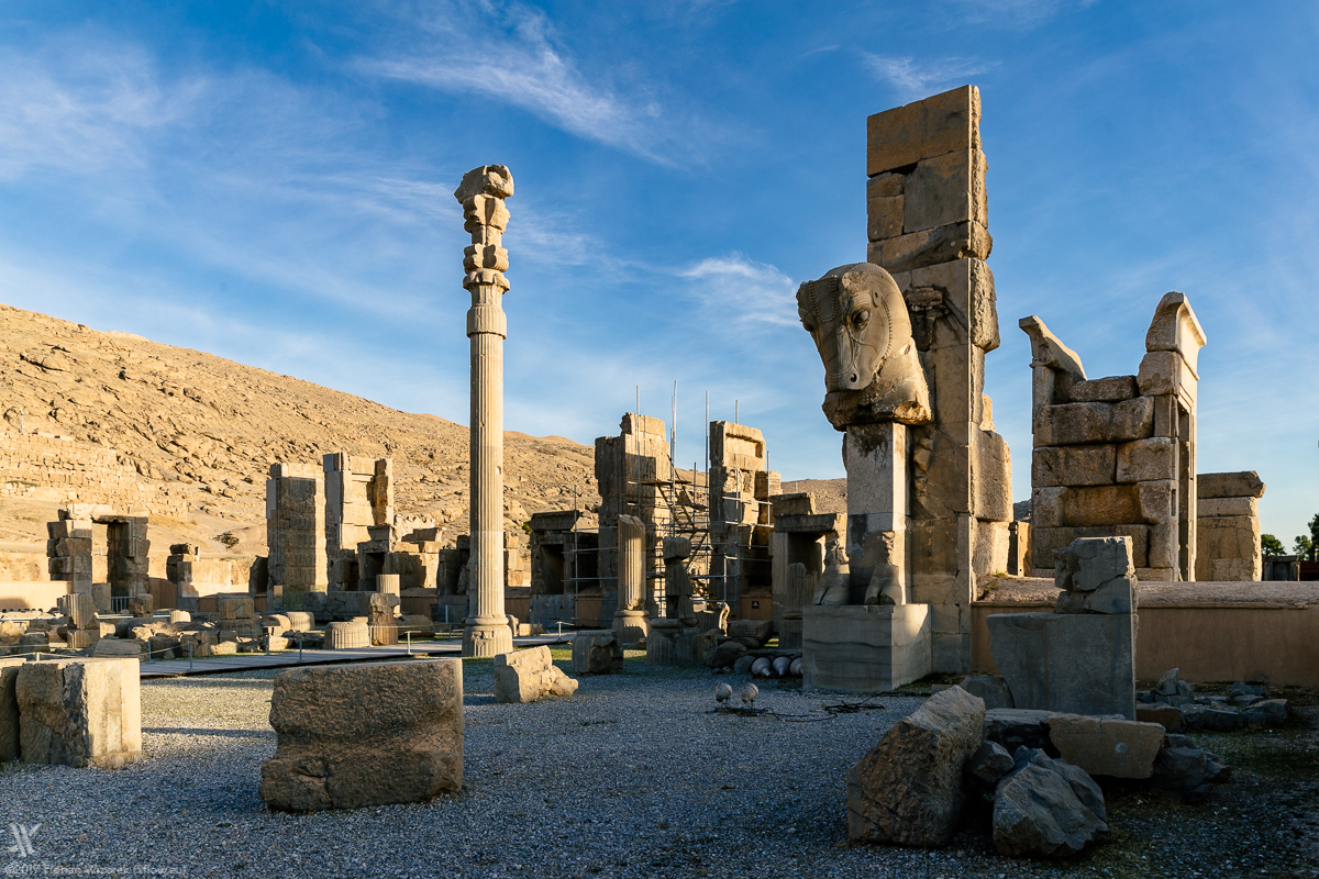 Über derart geschichtsträchtigen, gut 2500 Jahre vom Menschen besiedelten Boden zu laufen, durch das sagenumwobene Tor aller Länder des ersten Propylons zu schreiten, ist schon etwas sehr Besonderes. Am intensivsten wurde Persepolis übrigens von seinem zehnten Regenten Xerxes I. geprägt, der nicht nur persischer Großkönig sondern auch ein ägyptischer Pharao war. Geschichtlich dünn besohlten Menschen dürfte dieser Charakter zumindest namentlich aus dem Film 300 bekannt sein.