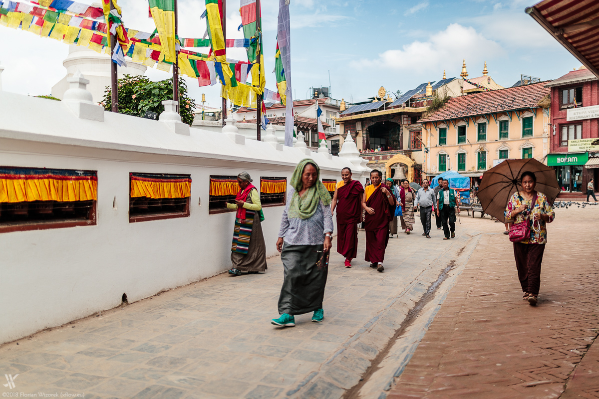 Der tibetische Buddhismus spielt sich in seinen alten Grenzen ab, dem Kulturkreis gelegen zwischen Lhasa, Nepal und auch Bhutan. Und so komme einige der Wallfahrer um uns herum von weit her. Sind hunderte Kilometer zum Stupa gepilgert und mussten teilweise die Berge des Himalaya überwinden. Pilgern bedeutet nicht einfach so zu laufen, sondern sich alle paar Schritte der Länge nach auf den Boden zu werfen und vor allem äußerst enthaltsam zu leben.