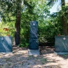 Mit der Regionalbahn geht’s zunächst nach Nauen und zum Friedhof in der Parkstraße. Genau dort, gleich rechts hinterm Eingang, ist das sowjetische Ehrenmal und auch der Soldatenfriedhof zu finden. Sowohl Obelisk als auch die Grabsteine bilden einen wunderbar hellen Kontrast zum satt-üppigen, dunklen Grün des Waldfriedhofs. Der Waldboden lässt den Obelisken zwar ein wenig kippen, aber pittoresk ist die Anlage allemal. Das Friedhofsgelände unterliegt übrigens Öffnungszeiten, so dass man nicht immer Zugang besteht.
