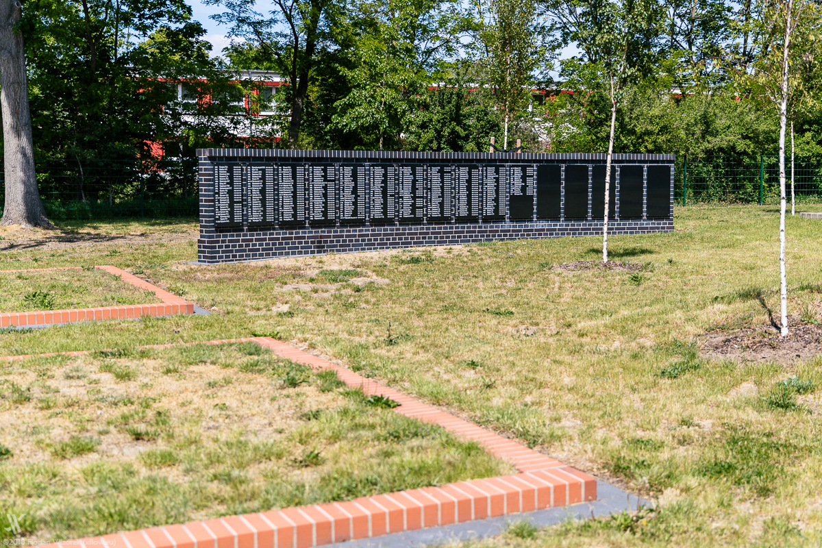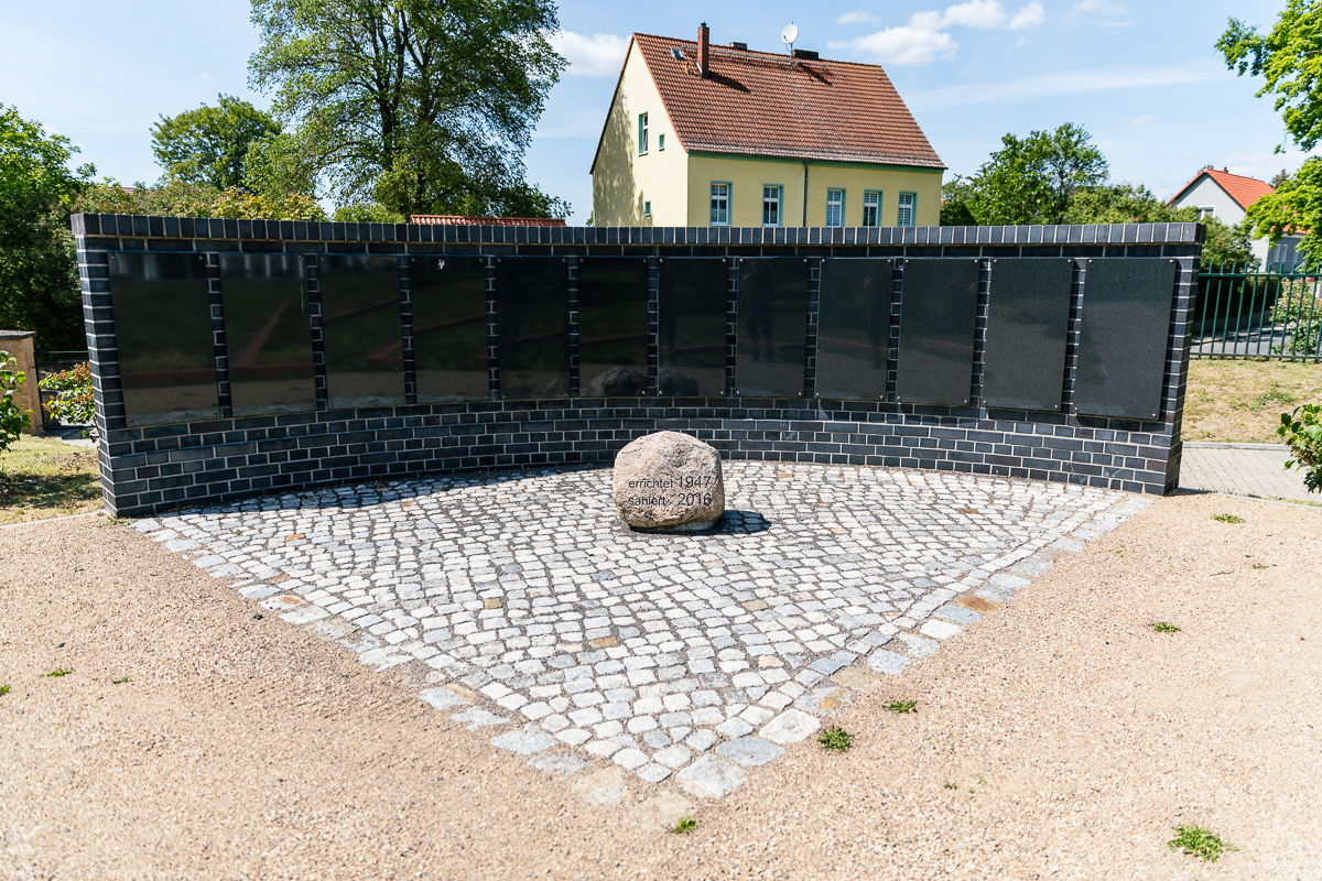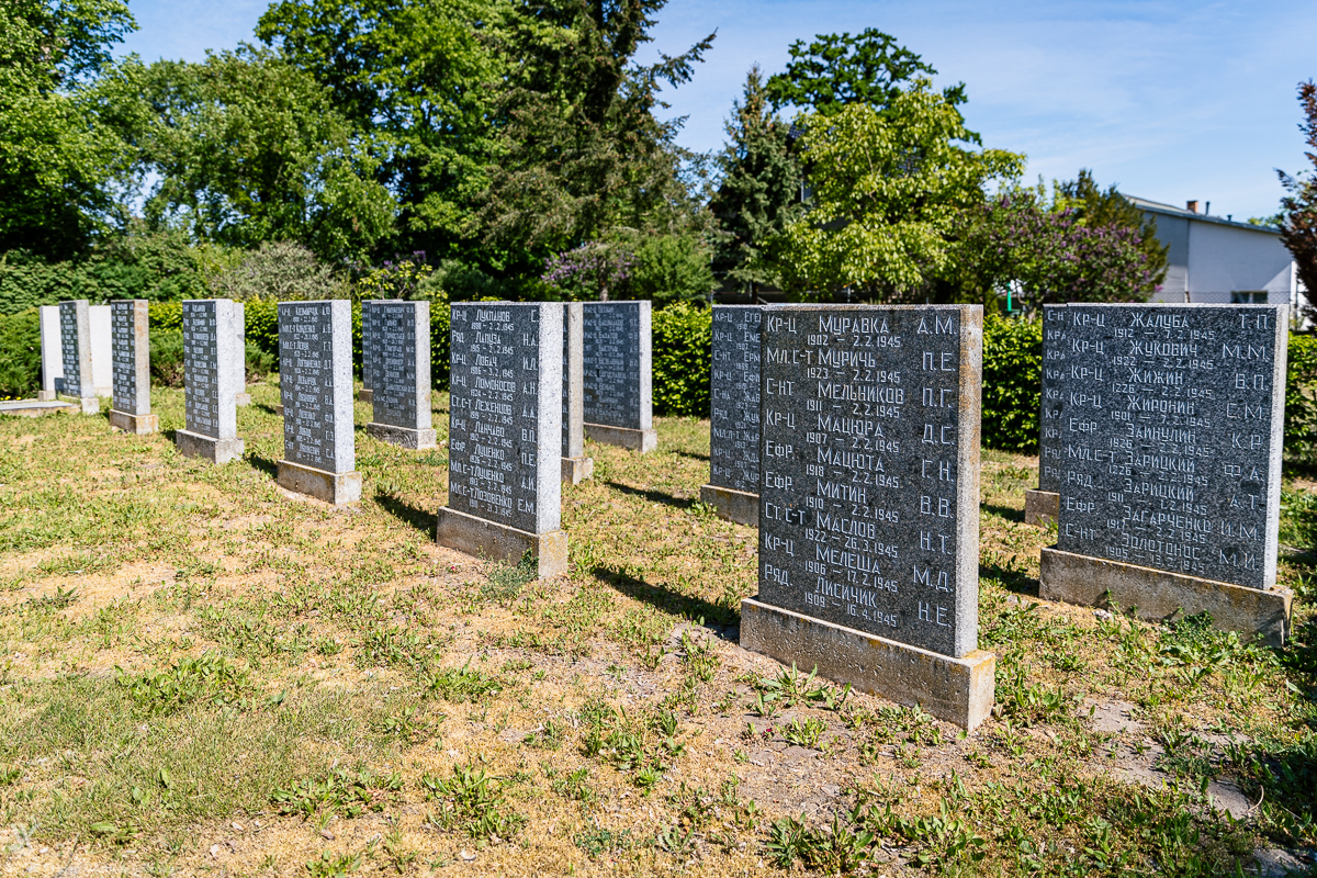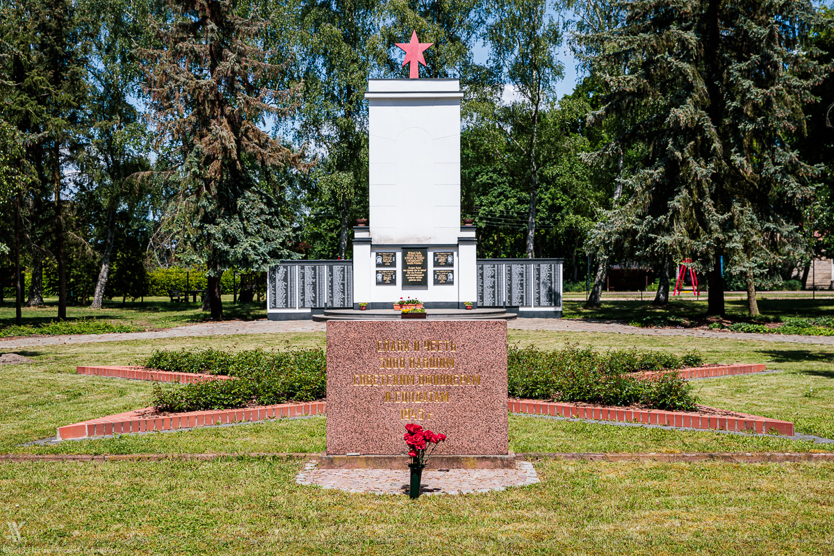 Auf dem Weg nach Letschin beschließe ich, dass der verdammte Gegenwind und ich heute Abend definitiv nicht zusammen in den Sonnenuntergang reiten werden. Seine Böen lassen gute 20% meiner Leistung verpuffen. Zum Glück ist Letschin nur 8 Kilometer entfernt. Das sowjetische Ehrenmal in Letschin ist auf dem südlichen alten Dorfanger zu finden. Während ich fotografiere, fällt mir der rege Straßenverkehr auf. Der ist (an diesem Feiertag!) heftiger als bei mir in Berlin vor der Haustür. Feuerschalen säumen den Weg entlang der Grabtafeln des Letschiner Ehrenmals und nahezu überall stehen die letzten Tage des Zweiten Weltkrieges als Todestag verzeichnet.