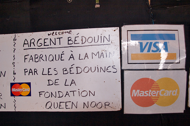 The Bedouins are often living in small caves or in rock niches. Sometimes there they even stay overnight. From there they start to offer their camel or donkey to the tourists, but also sometimes trying to huckster “very old coins”. Along the most walked paths tourists can find a lot of souvenir shops; there are even shop shacks behind Ed-Deir offering credit card payment :-)