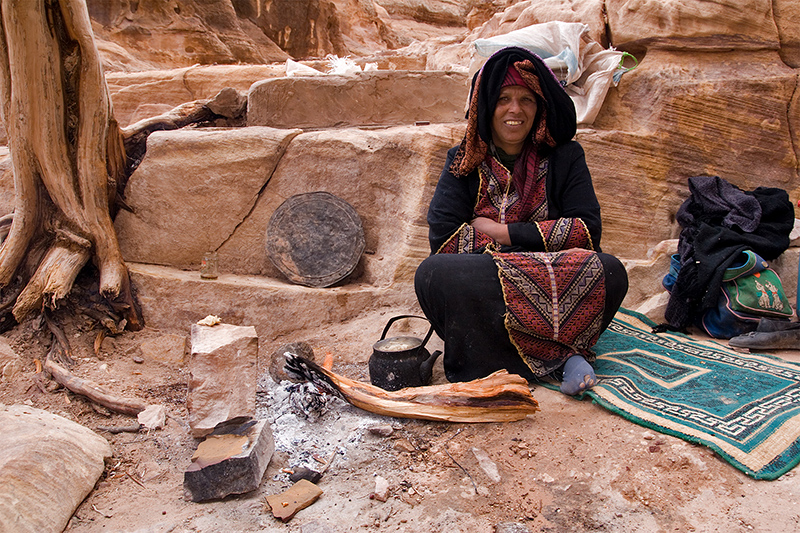 Audi invited us to see his home and to have a tea. First the girls hesitated because of their missing companion, but it didn’t take long and I was totally into it as meeting hospitality and everyday life is the basic background of my travel. After a 1 hours lasting walk down from the bottom of Petra valley to the Bedouin village we arrived at Audi’s home. When going inside I spotted a familiar face: Audi’s mother, who I helped to cut a tree earlier that day. She promptly supplied us with tasty black tea with mint leafs and a freshly baked bread. In the evening hours Audi and his friend insisted on taking us back to the Petra village, to our hotel. Quickly they arranged a transportation possibility to bring us to 10km far away central Petra.