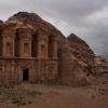 The round shapes of 1.5km long Siq are deeply impressive. At then end this washed-out stone tube is almost 150 meters high, but only a few meters wide. But there’s no better curtain to introduce the treasury step by step to your eyes. From that point on you can live out your hiking and climbing phantasies. There’s much to see, much to discover and actually everything is worth to be seen with your own eyes. There’s f.e. the high place of sacrifice, which is located really high above Petra and still has the trenches to make blood flow off. Not far away from that place are the remainings of Petra overlooking Egyptian obelisks. From there having a look down to the valley is just breath taking. Not far away is a collection of surreal rocks formed like faces which seem to watch over the Petra site, while blue sky is being invaded by clouds.