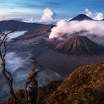 At 4 o’clock in the morning there’s somebody knocking on the bungalow’s door. My driver just turned up, willing to take me and my photo equipment on his ojek up to the summit of the Kelimutu. It is chilly, dew is in the air. For the locals it is even damned cold, as I got to know later. After driving for about half an hour we reached the car park below the peak. At the same time a small old man is making tracks to the Inspiration Point, a centrally located viewing point above the crater lakes. Every morning the old man is carrying hot water, real coffee and tea to the Kelimutu, selling it for humane prices to the tourists. Short before 5am the sun is starting its play of colours by sending the first beams over the summits in the far away distance. Though, it takes some time until the sunlight reaches the water of the lakes, that is floating deep down in the craters. At about 07:30 that changes and the sun is enlightening the surreal coloured waters. Due to its remote location the third crater even needs to wait longer for sunlight.