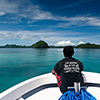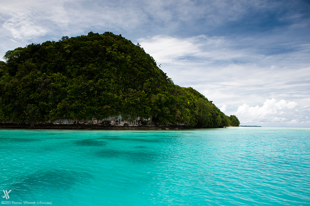 Doesn’t matter if the sun is shining and the sky is blue or if the sky is shrouded in clouds, Palau’s little rock islands always cut a fine figure. In particular that is enjoyable when being in the morning or evening hours near the Seventy Islands, a small picturesque group of islands in the west of Palau archipelago. You cannot get close though as it’s a preservation area for all things called fauna and flora.