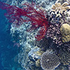 ). There a submarine scarp face abruptly drops some 250 metres away. While on top of this wall really nice corals can be found, big fish are taking over control if you go down deeper. Driven by water jet nutrient matter arrive the ocean surface, which explains the run of fish and other animals; then water appears a bit more “dirty” as it is loaded with particles. Similarly spectacular is the Peleliu Drop-Off whose ocean currents are so strong that they can carry away unconcentrated divers to the Philippines, some 1500km to the west.