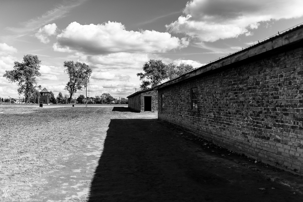 After several days of uninterrupted September rain Southern Poland finally receives some sunny attention again. Our central star’s shine is skin-deep only though as extensive ice clouds rush through the sky over Silesia telling that temperatures are everything but sunnily warm. The beautiful fight between light and shadow, between blue sky and clouds deceives as the lead character is the icy wind of history blowing over former extermination camp area to give a tiny foretaste of what winter and living conditions were like for detainees.