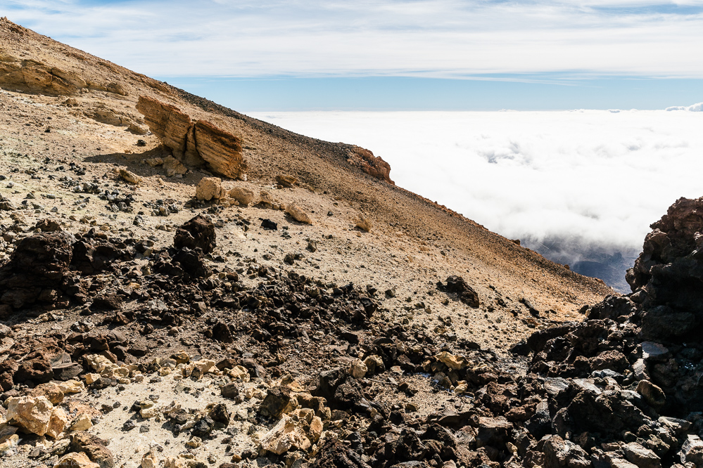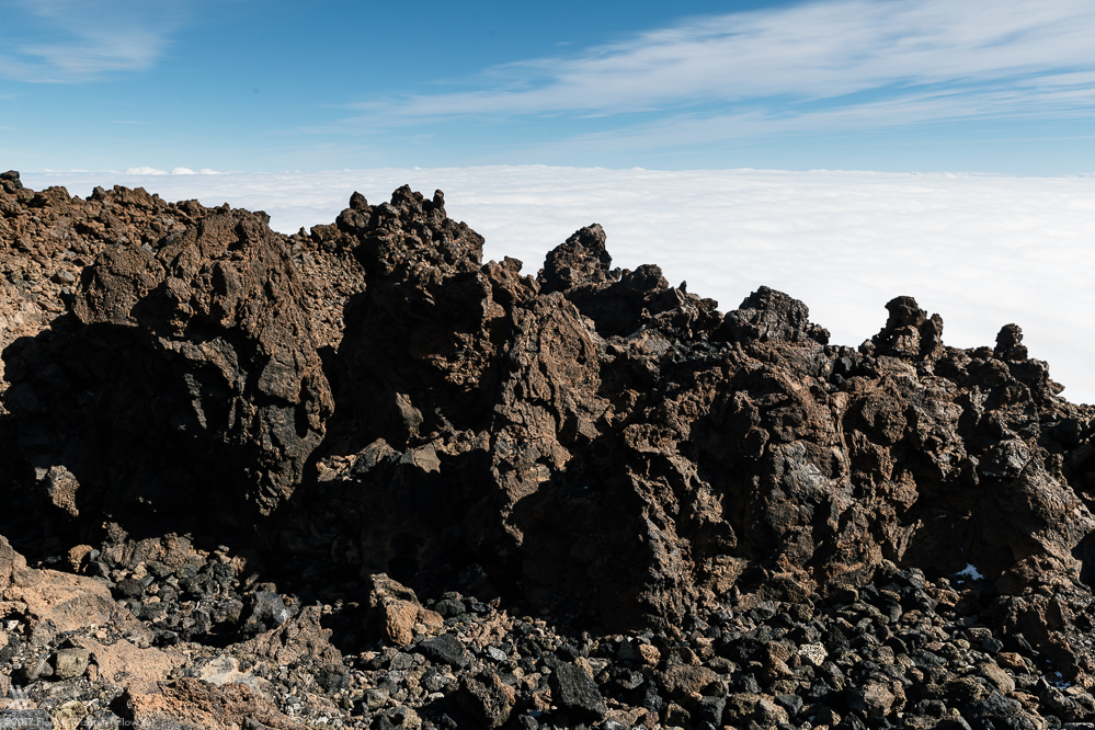 Climbing that field of lava – so called Narices del Teide – was by far the most challenging and exhausting of my volcano photo career. On the way down to Pico Viejo crater you’re almost flying and only some ~20 minutes are needed, but the way up again is a sheer grind as you’ll be confronted with unbraked lava chunks falling down on you when climbing fully equipped as well as with heavy photo stuff through a terrain of thousand needlesticks and razorblade rocks.