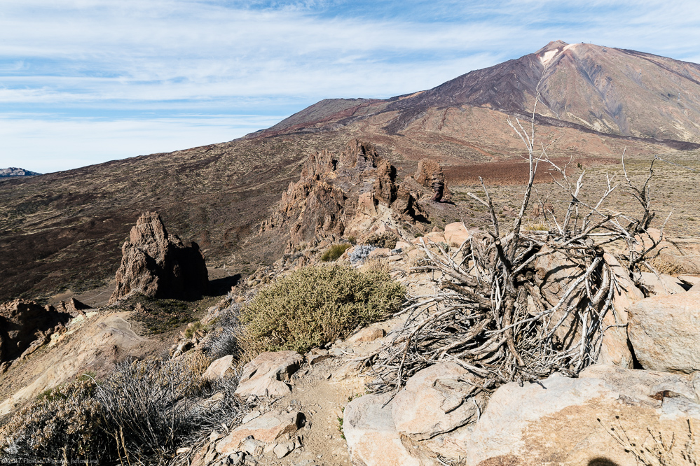 Though on El Teide’s hiking paths one is pretty much save and away from the touristic bustle that’s happening around summit and valley station of the cable car. Of course a volcano day visit is part of many all-inclusive tourists; what shouldn’t be seen negative, as El Teide is one of the very few easily accessible volcanoes worldwide allowing visitors on its shoulder. However, when humans fight about parking space around the valley station then the whole thing becomes a sad drama…