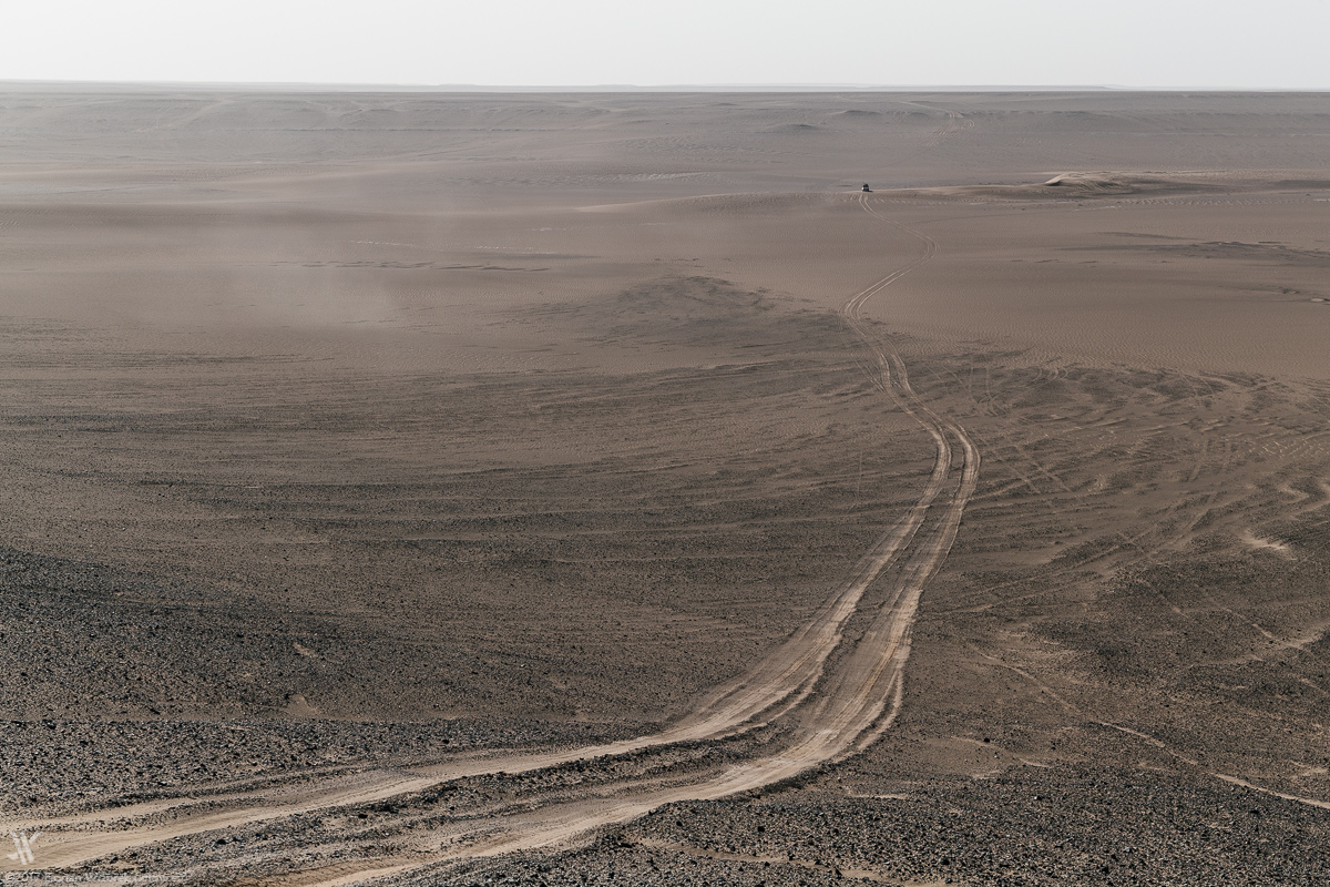Before reaching the dunes we need to cross the unspectacular and pretty dusty Dasht-e Lut lowland of Hamada. If anyone ever had the idea of Earth being flat then that thought must have been come up over here… Hamada’s flatness is so flat that even for me, after having seen Danakil desert as well as African salt pans, it’s unbelievably even.