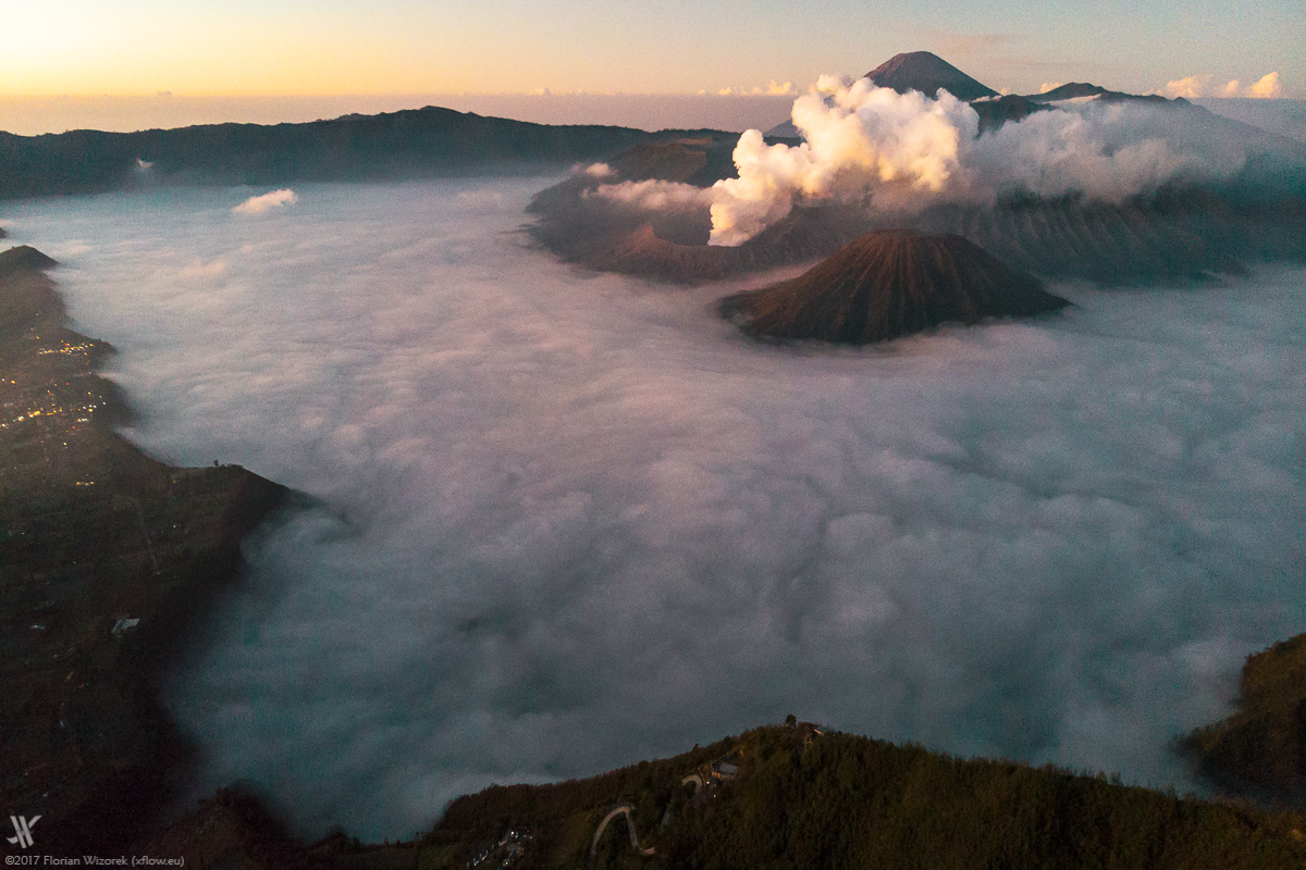The sublime view of majestic Tengger caldera volcanoes peeping through the morning mist already excited me back in 2009. Already in those days I noticed the mob that’s harrowing itself up to Penanjakan peak in the middle of the night to watch the sunrise at volcanoes Bromo and Semeru. Almost 10 years after I return, this time with a drone and to observe, that touristic bustle has intensified but also changed.