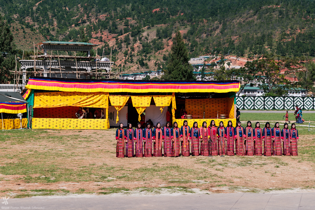 Photographically I focussed on the Thimphu Tsechu of coure, that made all people flock to the concrete manège being flanged to the royal palace. Its ranks are full to bursting, making forces enforce law and order by absolutely obscure measures. Often they give you a bollocking as allegedly others wouldn’t see anything… How could you dare to stand up for 20 seconds to take a picture or just loosen your legs. A grotesque argument, against the background of an opaque wall of hundreds of sun protection umbrellas right in front of us. We also experienced situations where law enforcement forces put up meaningless barriers that virtually facilitated things like a mass panic. Rainer Schaller’s Love Parade says hello…
