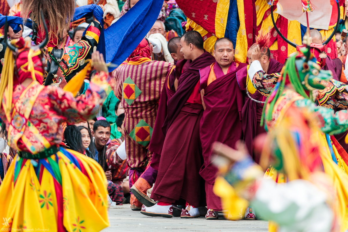 The mask culture of Buddhism and Tibet is something absolutely unique. Through masks and dances the most different legends, myths, characters, but also the fight of good against evil are being told. In particular in the Kingdom of Bhutan that culture is pretty much alive and most colourful. Its strongest form of expression is Tshechu, the mask festival. I visited them in the village of Wangdue and in Bhutanese capital Thimphu.