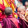 No matter if village or capital, a Tshechu always quickly reveals (local) hierarchies and customs. While the young monks are allowed to take a nap under the roof of one of the towers, the head monk and religious leader has to watch the whole thing seamlessly from his special lodge. He sits behind large windows, framed by colourful flags and like being set in concrete.